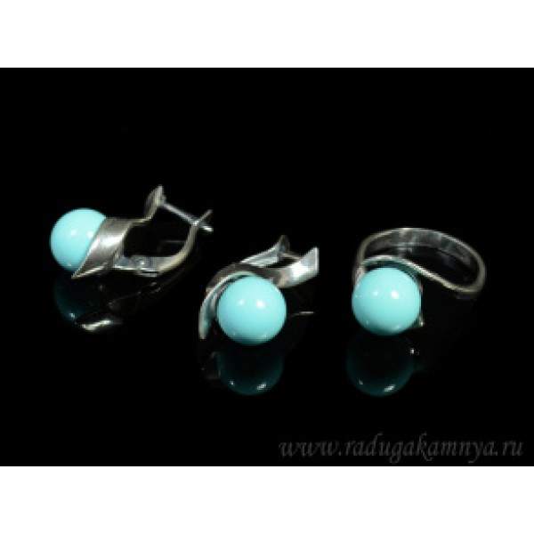 • Кольцо и серьги с майоркой цвет голубой  (иск.)