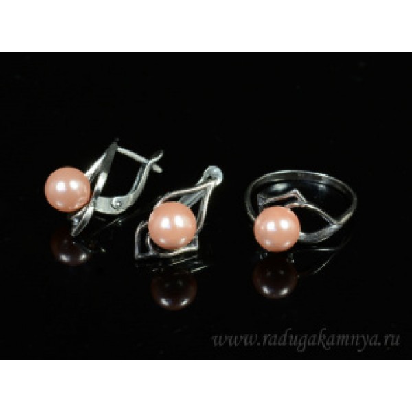 Кольцо и серьги с майоркой цвет розовый (иск.)