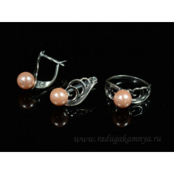 Кольцо и серьги с майоркой цвет розовый (иск.)
