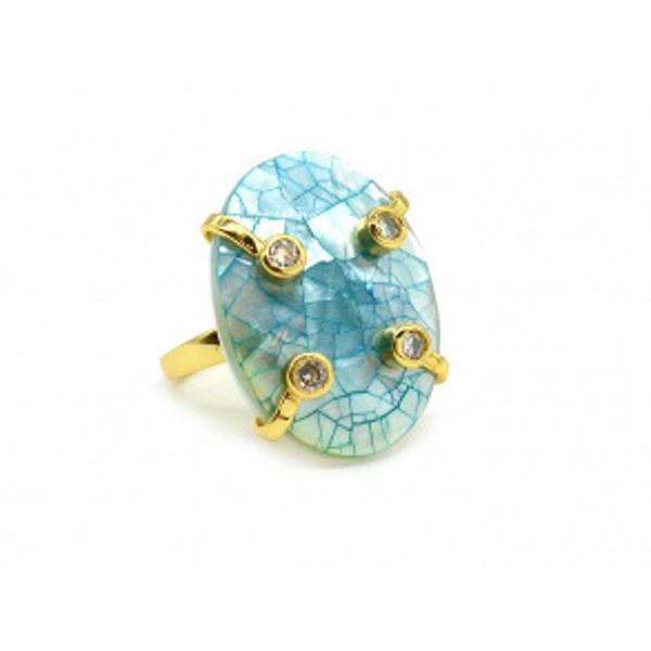 Кольцо с перламутром овал 20*30мм цвет голубой