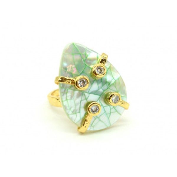 Кольцо с перламутром капля 23*30мм цвет зеленый