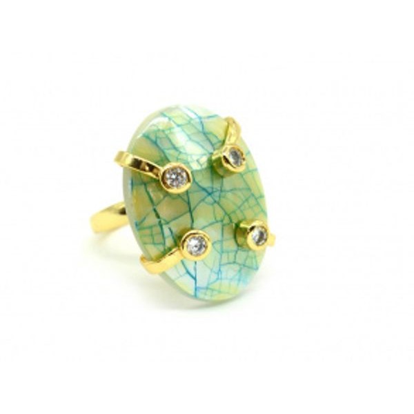 Кольцо с перламутром овал 20*30мм цвет зеленый
