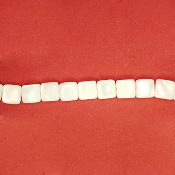 Перламутр натуральный на нитке, бусина Квадрат плоский 7*3 мм, цвет белый, нить 19 см/24 шт