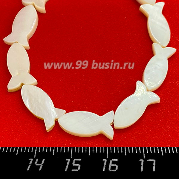 Перламутр натуральный на нитке, бусина Рыбка плоская 16*9*3 мм, цвет белый, нить 18,5 см/12 штук