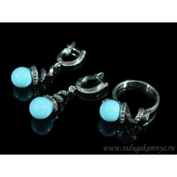 • Кольцо и серьги майорка цвет голубой  (иск.)