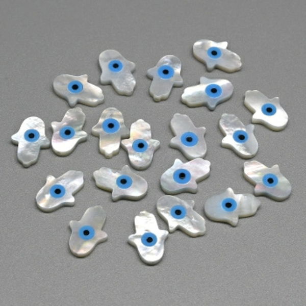 Бусина от сглаза из перламутра Хамса 9*13мм цвет белый.