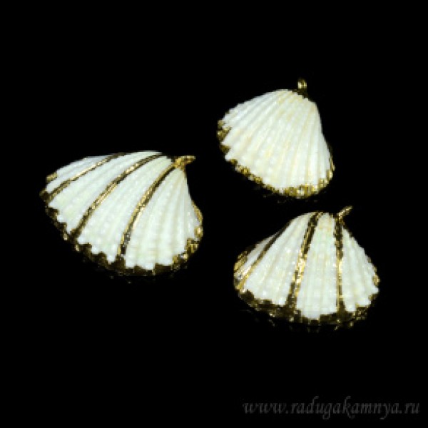 Кулон из перламутра ракушка 25*23мм цвет белый с золотом