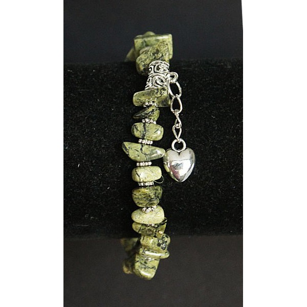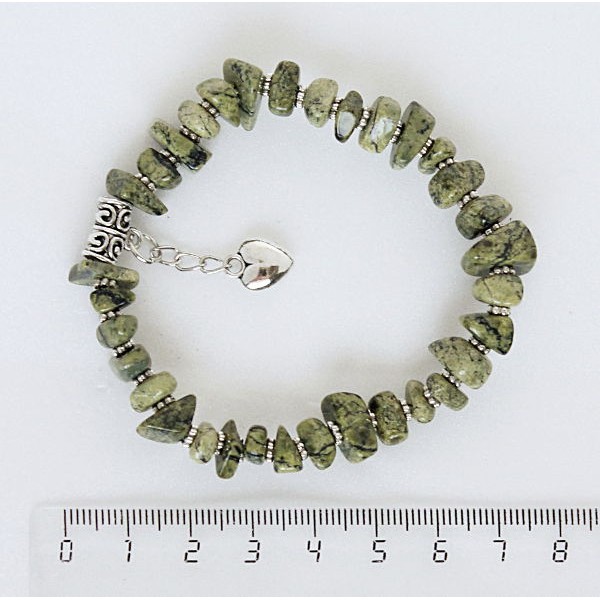 Браслет из змеевика уральского, галтовка, с подвеской