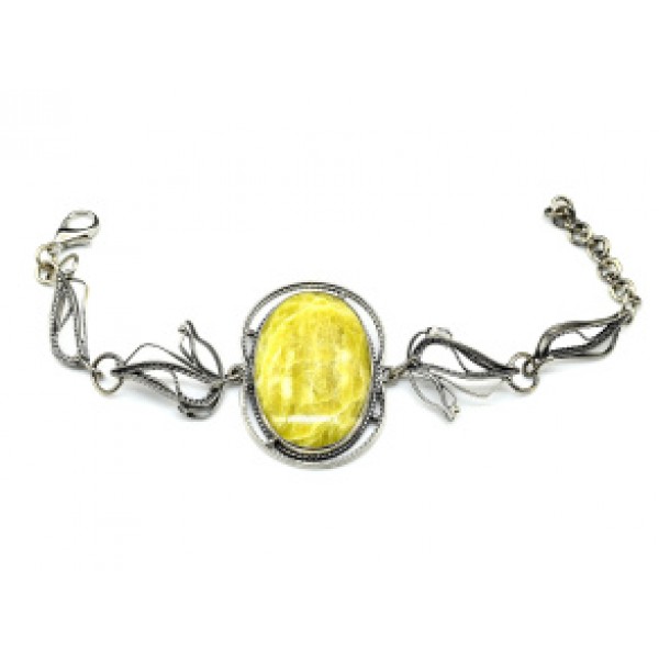 Брошь из змеевика, с ажурным контуром,  цвет ант. серебро, овал 25х18мм