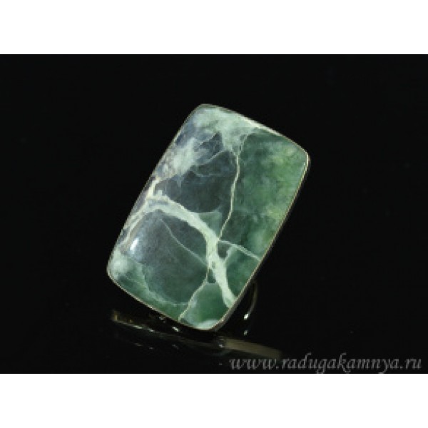 Кольцо из змеевика, литое широкое, цвет родиум, се..