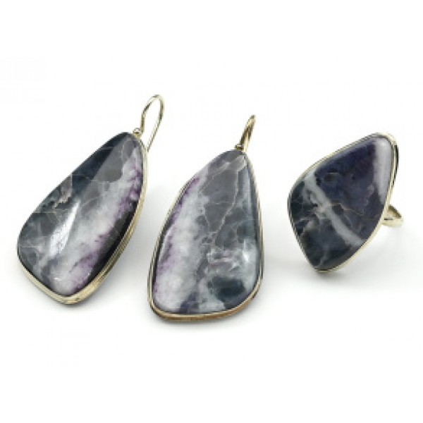 Заколка из змеевика, зажим для волос, цвет ант. серебро, 20мм