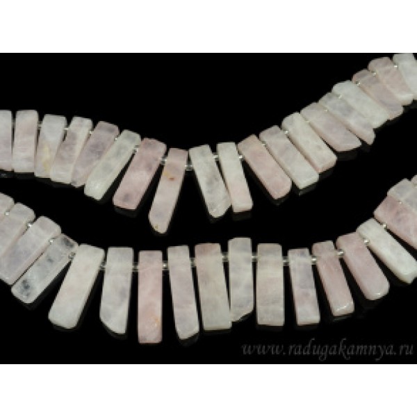 Бусины из розового кварца пластинки 10*30мм, 38см, 32 бусины