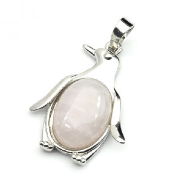Кулон в виде Пингвина 23*32мм с розовым кварцем в металле