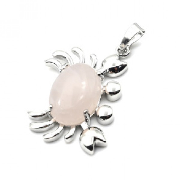 • Кулон с розовым кварцем "Краб" 22*34мм в металле