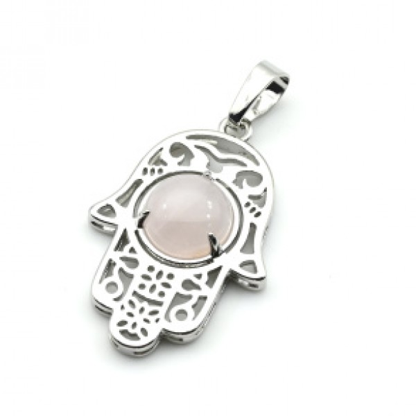 • Кулон Рука Фатимы 22*30 с розовым кварцем в оправе из ювелирного сплава
