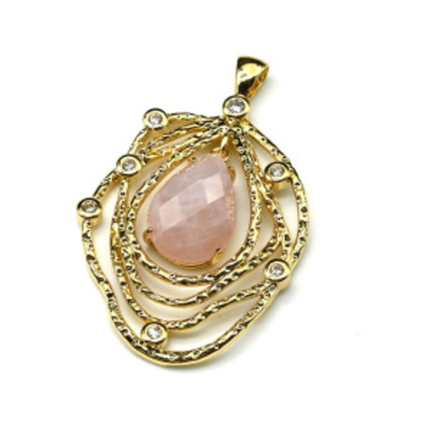 Кулон с камнем розовый кварц паутинка 31*40мм, золотистый