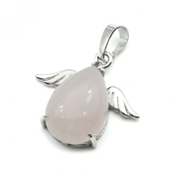 Кулон Капля с крыльями 25*23мм с розовым кварцем