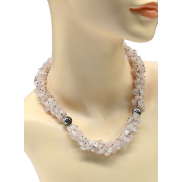 Бусы крошка "Жгут" из розового кварца, 46см