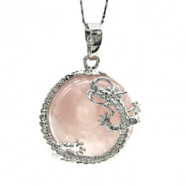 Кулон Дракон 24*24мм с розовым кварцем