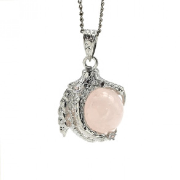 Кулон с розовым кварцем Лапа дракона 25*25мм, шарик 16мм