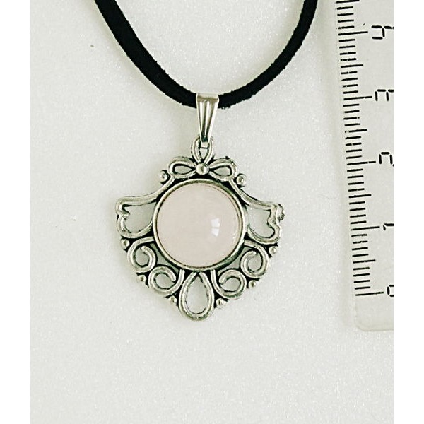 • Кулон из розового кварца, круг 12мм, оправа "балерина"