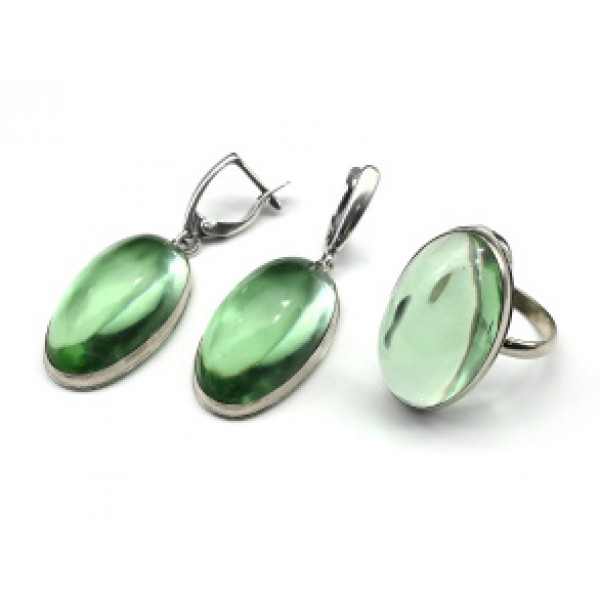 Кольцо и серьги с кварцем (имитация нефрита)