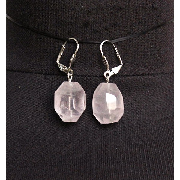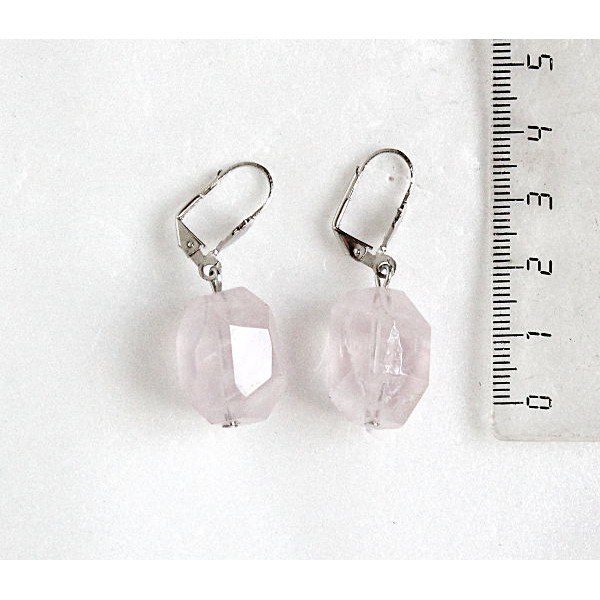 Cерьги из розового кварца, камень 20х15мм, крупная огранка