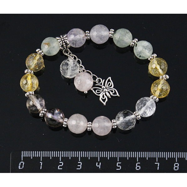 Браслет аметист, пренит, цитрин, розовый кварц, горный хрусталь, с подвеской, шарик 10мм огранка