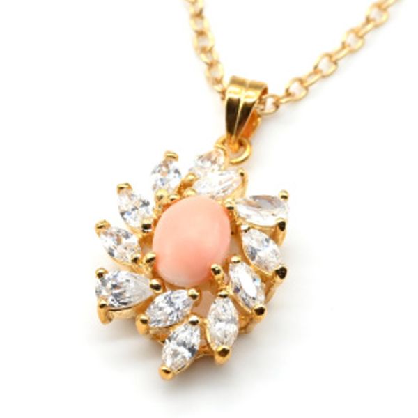 Кулон с позолотой из коралла со стразами