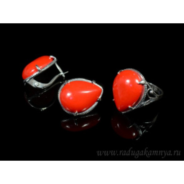 sg27-00414, sg27, sg27-, 27-, 27-00414, кольцо_и_серьги_с_кораллом, коралл, серьги_коралл