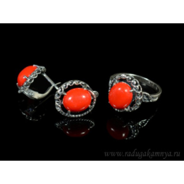 sg27-00427, sg27, sg27-, 27-, 27-00427, кольцо_и_серьги_с_кораллом, коралл, серьги_коралл