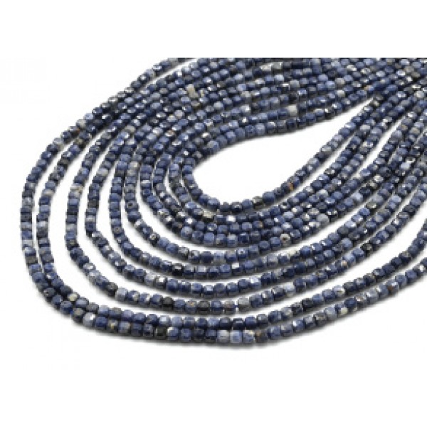 Бусины из коралла синего кубик гр.3мм, 39см, 133 бусины