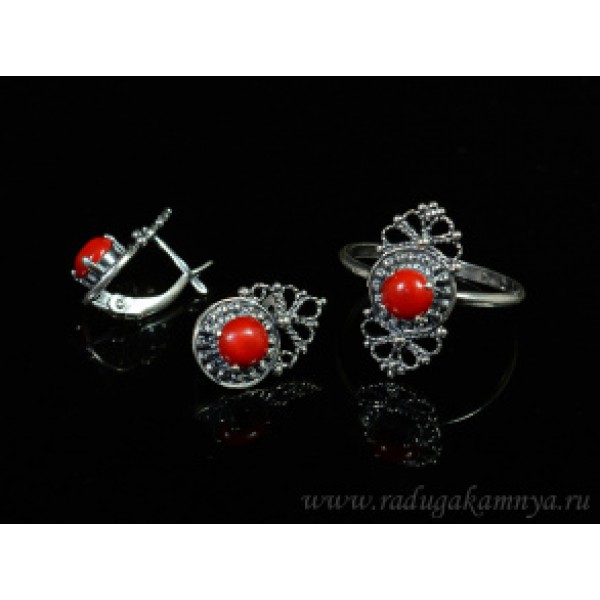 • Кольцо и серьги с кораллом (имитация)   (иск.)