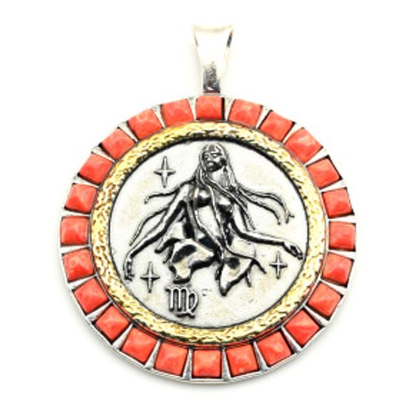 Кулон С 925 с кораллом (имитация) "Дева" 33мм, 9,63гр (иск.)
