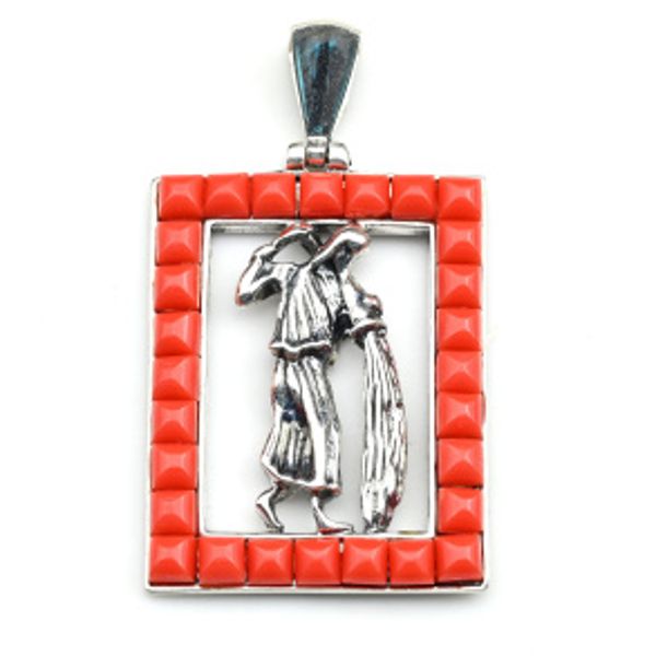 • Кулон С 925 с кораллом (имитация) "Водолей" 23*29мм, 4,93гр (иск.)