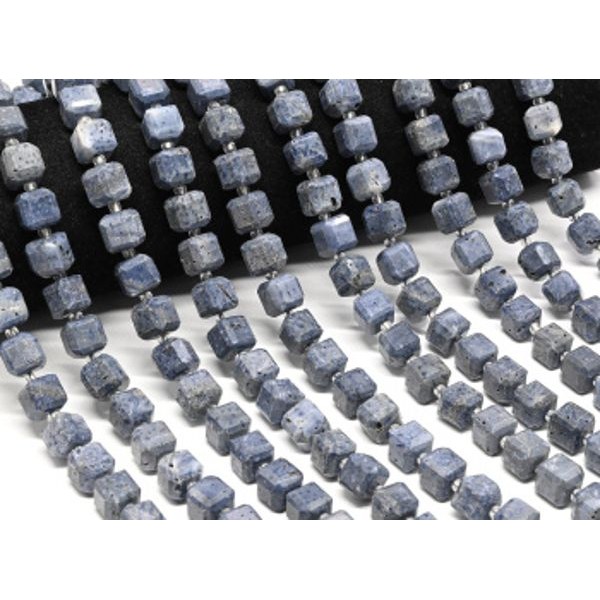 • Бусины из коралла синего кубик гр.9мм, 38см, 33 бусины