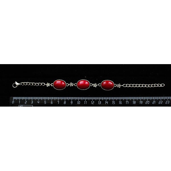 Браслет из коралла красного (иск.), овал, 18х13мм, на цепочке