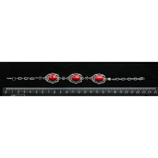 Браслет из коралла красного (иск.), "принцесса" овал 14х10мм, на цепочке