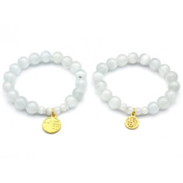 Браслет из кошачьего глаза (синт.) шарик 6; 10мм цвет белый