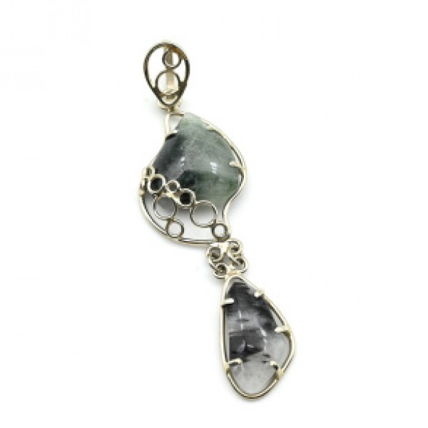 Брошь из кварца-волосатика темного (зеленые волосы..