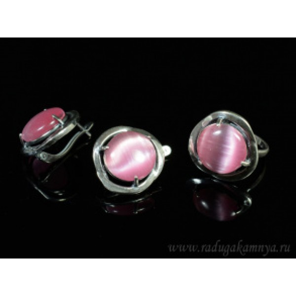 Кольцо и серьги с кошачьим глазом, цвет розовый