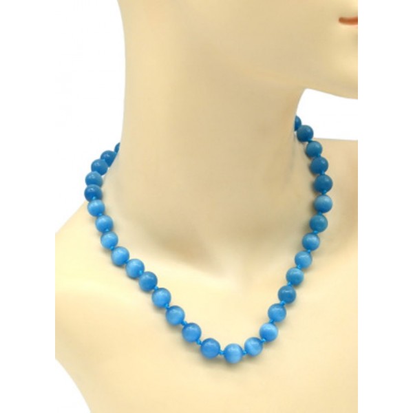 Бусы из кошачьего глаза (синт.) шарик 10мм цвет лазурный, 45см (иск.)