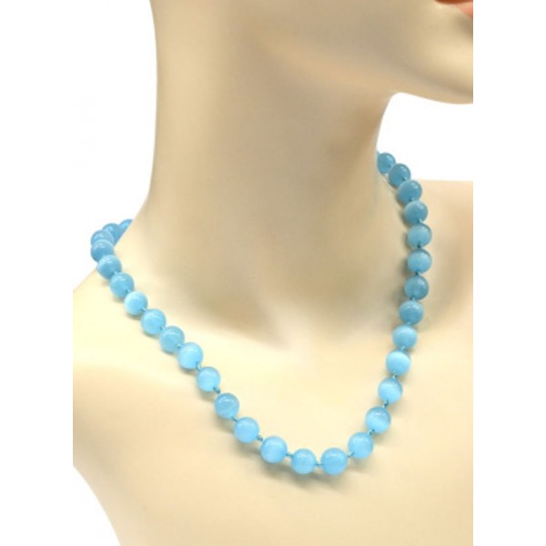 • Бусы из кошачьего глаза (синт.) шарик 10мм цвет голубой, 46см (иск.)