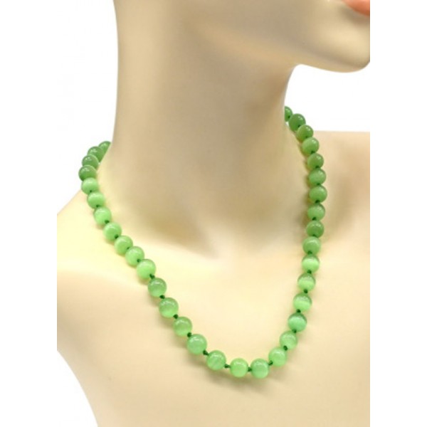 Бусы из кошачьего глаза (синт.) шарик 10мм цвет зеленый, 46см (иск.)