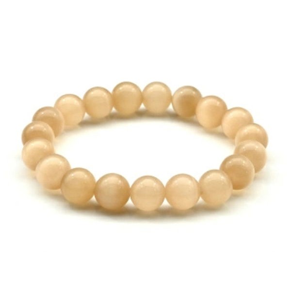 Браслет из кошачьего глаза (синт.) шарик 8мм цвет кремовый, 15см (иск.)