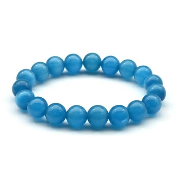 Браслет из кошачьего глаза (синт.) шарик 8мм цвет лазурный, 15см (иск.)