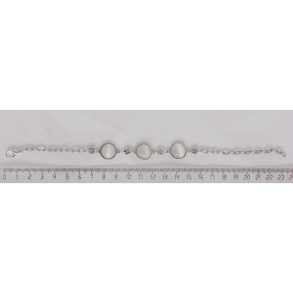 Браслет из кошачьего глаза (синт.), круг 12мм, цвет белый, 3 камня, на цепочке