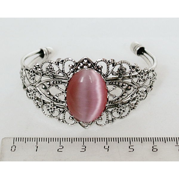 Браслет из кошачьего глаза (синт.), овал 25х18мм, цвет розовый, жесткая основа, цвет ант.серебро