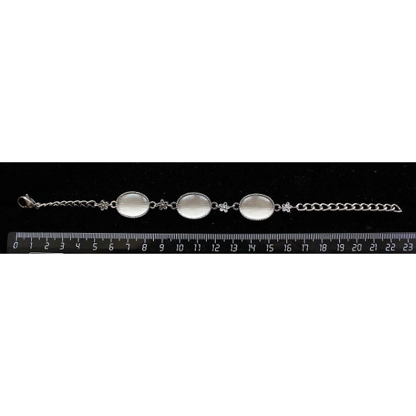 Браслет из кошачьего глаза (синт.) белого, овал, 18х13мм, на цепочке