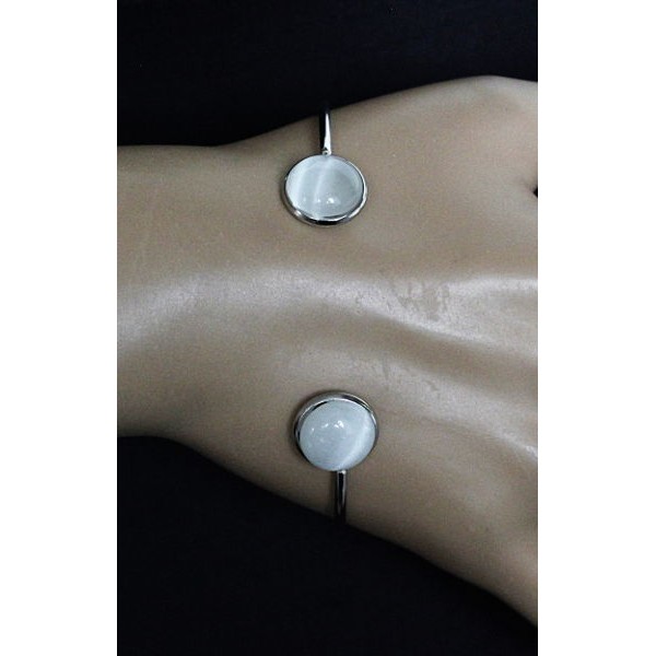 Браслет из кошачьего глаза (синт.) цвет белый 2 круга 12мм, жесткая основа
